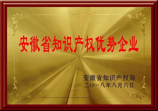 在公司董事長及總經理的正確領導下,我司于2018年8月6日榮獲安徽省知識產權優勢企業,2018年8月15日榮獲國家知識產權優勢企業。