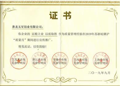 近日,由江蘇省質監局、浙江省質監局、安徽省質監局、江西省質監局、上海市質監局聯合發布通報,表彰2018年度“蘇浙皖贛滬名牌產品100佳”名牌產品,公司“五星”牌閃銀系列產品榜上有名。